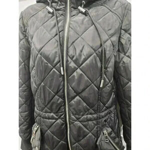 Calvin Klein Women’s Small Long Black Puffer Jacket Hooded Repreve Quilted