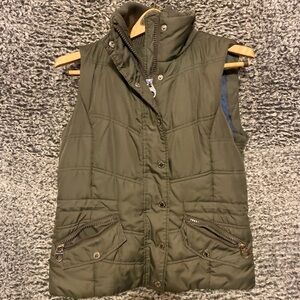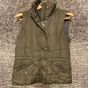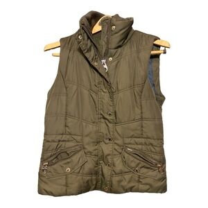 Calvin Klein Women's Small Sleeveless Puffer Jacket Olive Green Full Zip 2 Pocket