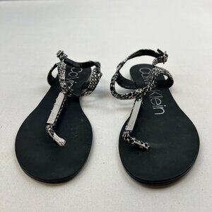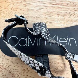Calvin Klein Women's Snake Print Samira Ankle Buckle Sandals Black/White 6.5