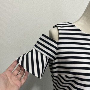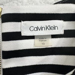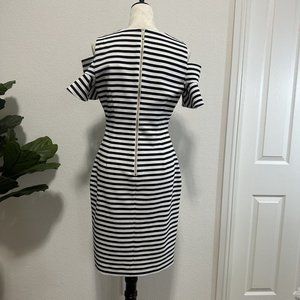 Calvin Klein Women's Stripe Cold Shoulder Sheath Dress Size 10 Black White EUC