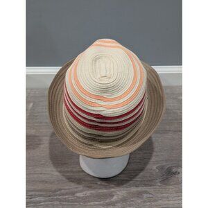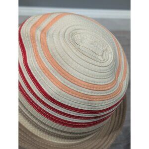 Calvin Klein Women's Striped Fedora Straw Hat Tan Red Orange Summer Lightweight. Please let me know if you have any questions. Thanks for looking!