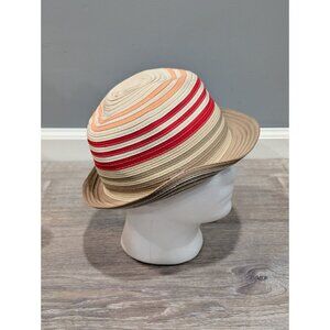 Calvin Klein Women's Striped Fedora Straw Hat Tan Red Orange Summer Lightweight