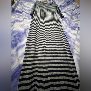 ●Women’s Striped Flowy Maxi Dress Blue And Grey 3/4 Sleeve