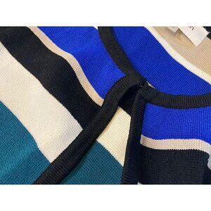Calvin Klein Women’s Striped Flyaway Topper Jacket Cardigan Longline Size Large. This is in excellent preowned condition. This was worn once briefly. Please message me prior to purchase with any questions. Thank you!