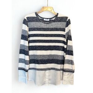 Calvin Klein Women's Striped Knit Sweater Shirt Combo Top Size s Blue/white