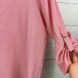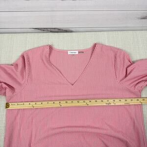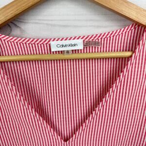 Calvin Klein Women's Striped V Neck Quarter Sleeve Blouse XL