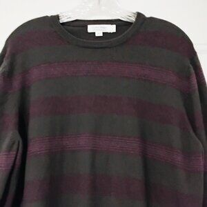 Calvin Klein Women's Sweater Crew Neck Merino Wool Stripe Soft Olive Eggplant L