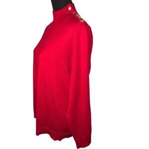 Calvin Klein Women's Sweater Size L, Mock Neck Red Long-Sleeved Gold-tone Button
