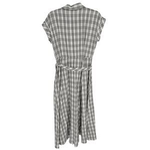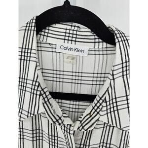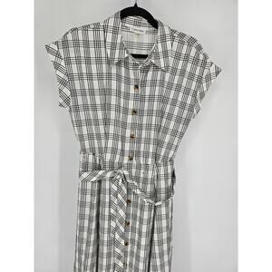 Calvin Klein Womens Sz 6 Maxi Length Shirt Dress Black White Plaid Belted Collar