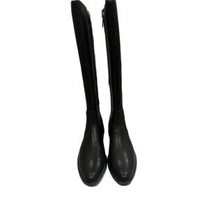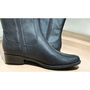 New in box Calvin Klein Talloria Leather Riding Black Tall Women's Boots Size 6.5. Low heel, pull tabs and side zip closure. Measurements are approximate