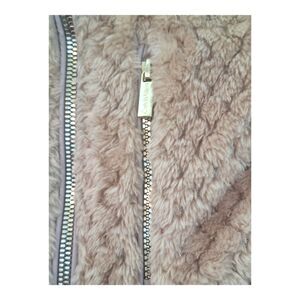 Calvin Klein Women's Tan Plush Teddy Bear Vest Sz S Full Zip Lush Faux Fur NWOT