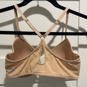 Experience comfort and style with the Calvin Klein tan underwire bra. Perfect for everyday wear. Bra clasps in the front.