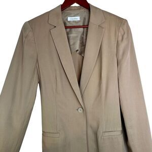 Calvin Klein Womens Tencel Khaki Blazer Jacket Size 14 Preppy Modern Career