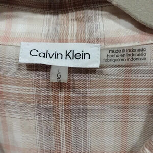 Calvin Klein Women's Tencel Lyocell Blend Tan Plaid Button Down Shirt Size L