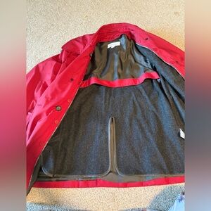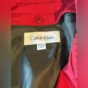 This Calvin Klein Women's Trench Coat in size XL is a stylish and versatile outerwear piece perfect for the winter and fall seasons. Made from polyester with a solid red color, this mid-length coat features a belted design and a classic trench coat style. The coat is machine washable and lined with polyester for added comfort. Ideal for travel and casual occasions, this Calvin Klein trench coat is a must-have for any fashion-forward woman looking for a timeless and practical garment.