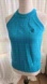 Stylish turquoise tank top by Calvin Klein. Features a halter neckline and soft knit fabric.