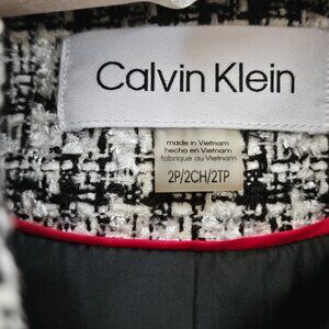 Layer up in chic style with this classic Calvin Klein tweed jacket that keeps you professionally polished in cooler weather.