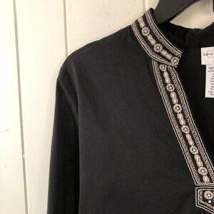 Calvin Klein Womens V-Neck Blouse with Embroidered Detail Small