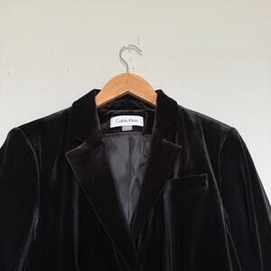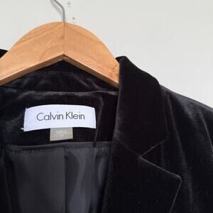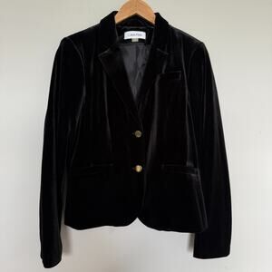 Calvin Klein Womens Velvet Blazer Jacket 10 Black Two Button Corpcore Office