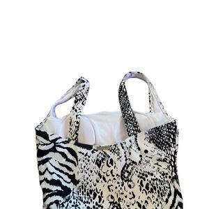 Calvin Klein Women's White Black Animal Print One Piece Swimsuit Size 4