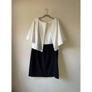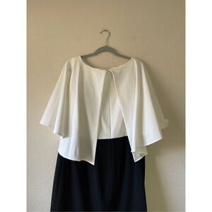 No flaws. It is all one piece. Size 16 w. Black and white colors. Would be perfect for a party, holiday, wedding guest, mother of the bride.