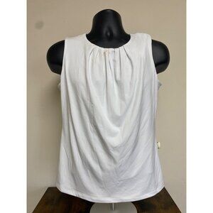 Calvin Klein Womens White Pleat Neck Sleeveless Blouse Top Size 10 (Stained) NWD