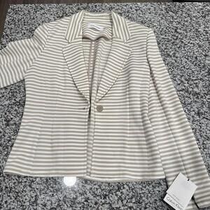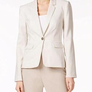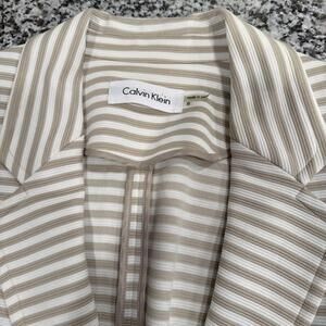 Calvin Klein Women's White and Cream Jacket Striped Blazer SIZE 8