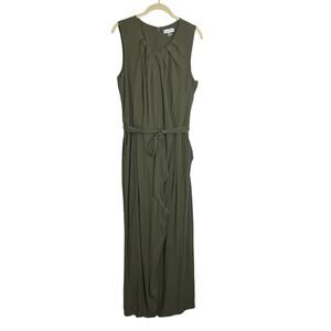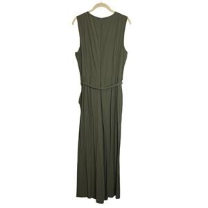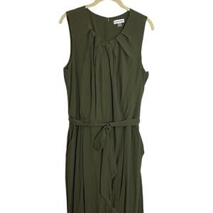 Calvin Klein Women's Wide Leg Jumpsuit Size 14 Green Textured Sleeveless Belted Pockets