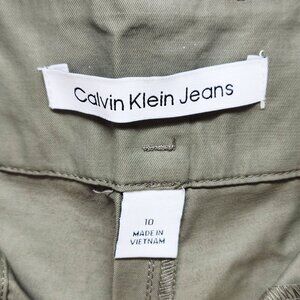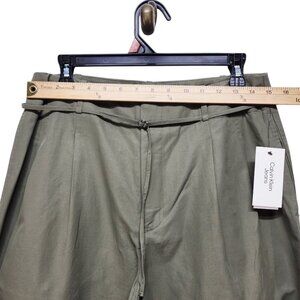 Calvin Klein Womens Wide-Leg Pants Size 10 Green Cotton Blend New With Tags