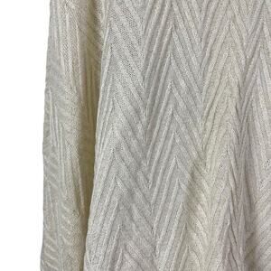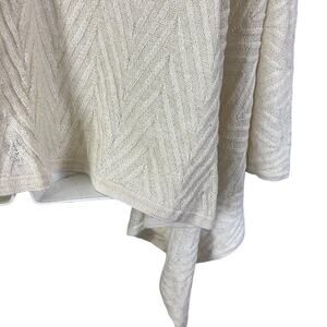 Calvin Klein Womens Wrap Poncho Open Cardigan Herringbone Ivory Gold Sweater O/S