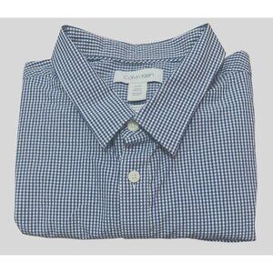 Calvin Klein Womens XL Blue & White Gingham Long-Sleeve Button-Down Cotton Shirt