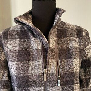 Calvin Klein Women's XS Gingham Black Gray Checker Fleece Zip Up LS Jacket