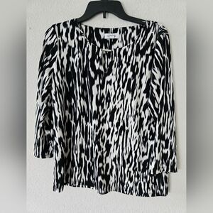 Calvin Klein Womens Zebra Print 3/4 Sleeves Blouse Sz Large Black White