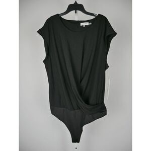 Calvin Klein Women's Black Wrap-Style Cap-Sleeve Bodysuit XL