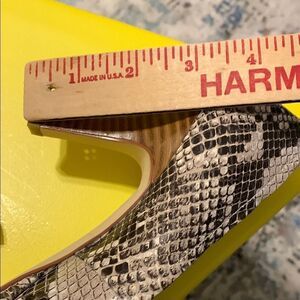 Step out in style with these Calvin Klein snakeskin peep toe heels. Perfect for any occasion, these shoes offer a chic and sophisticated look. The snakeskin pattern adds a unique touch to your outfit. NWOT Smoke free & Pet free home. See ALL photos for complete description/details.