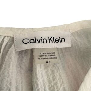 Calvin Klein Womens White Crinkled Tiered Midi Dress 10 Fit & Flare Minimalist