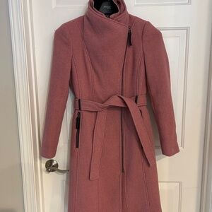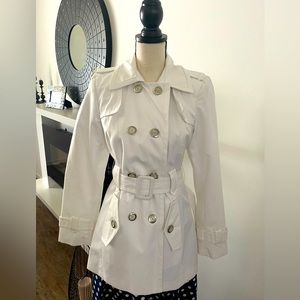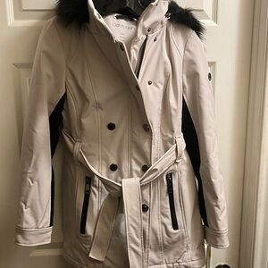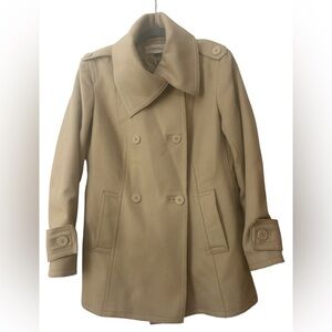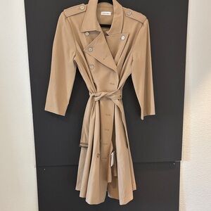 Calvin Klein Wool Blend Belted Trench Coat XXS Oatmeal Tan Single Button
