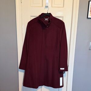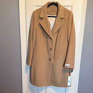 Calvin Klein Wool Blend Belted Trench Coat Oatmeal Tan Single Button