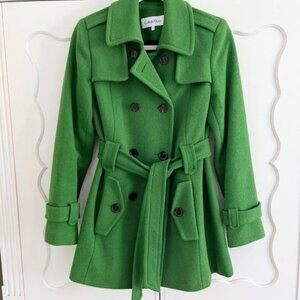 Calvin Klein Wool Blend Peacoat Double Breasted Jacket Coat Belted Size 4 Green