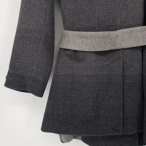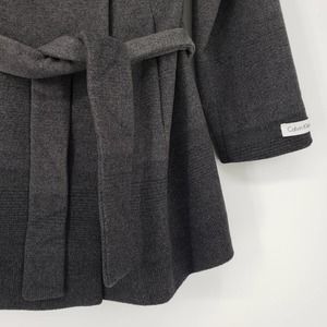 Calvin Klein Wool Blend Wrap Coat 8 Belted Long Sleeve Ombre Pattern Gray Black