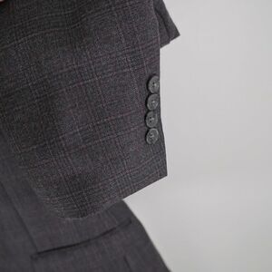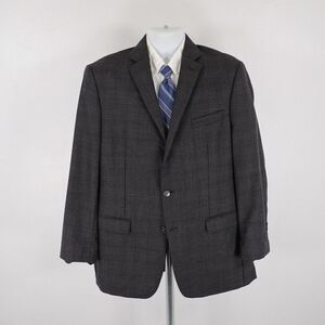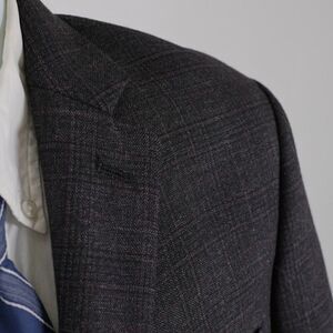 Calvin Klein Wool Gray Check W/ Purple Windowpane 2 Button Blazer 42L