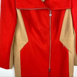 Calvin Klein Wool Peacoat Double Zip Colorblock Orange Camel Women’s 14