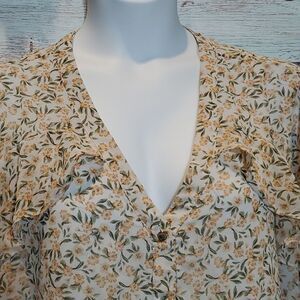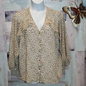Calvin Klein Wthite Floral Ruffle Button Up Blouse Sz 2X Plus 324