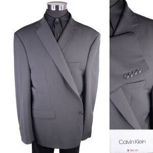 Calvin Klein X Slim Men's Sport Coat Blazer Two Button Solid Gray Wool Blend 52R