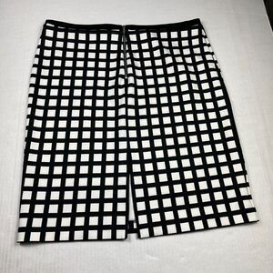 Calvin Klein XL Black White Checkered Pencil Skirt Work Office Zip Knee Length