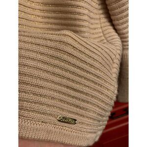Calvin Klein XL Gorgeous Peach & Metallic Gold Ribbed Cowl Neck Sweater EUC