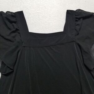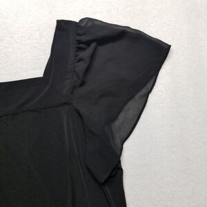 Calvin Klein Womens Size XL Top Blouse Black Square Neck Sheer Fully Lined Layered Flutter Sleeve Whimsigoth Gothic Classic Timeless Business Casual
