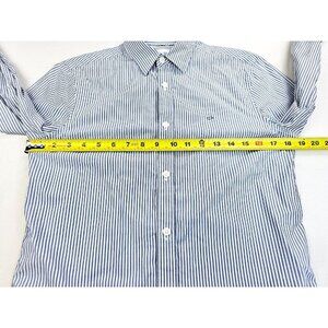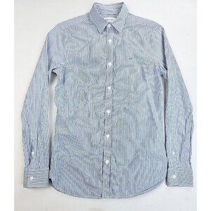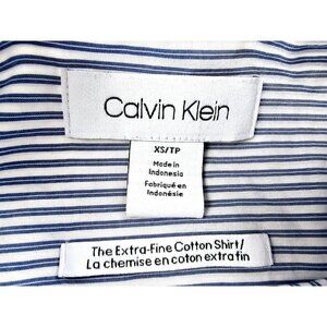 Calvin Klein XS Men's Blue White Stripe Embroidered Chest Logo Long Sleeve Shirt