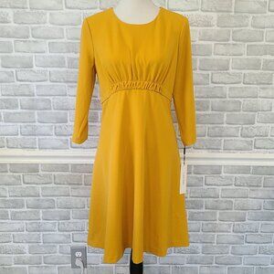 Calvin Klein Yellow A-line Dress Cinched Empire Waist NEW 14 Career Quiet Luxury