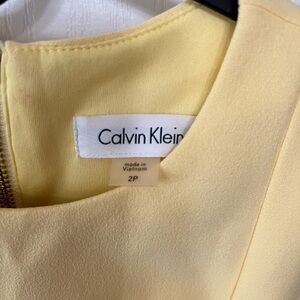 Chic yellow mini dress by Calvin Klein. Sleeveless design with a sleek silhouette. Ideal for any stylish outing.